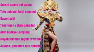 NUSANTARA Salah Satu Lagu Daerah Provinsi Lampung Lirik lagu: Sessat agung sai wawai Talo butabuh tarei cangget Gawei adat Tano tigeh cakak pepadun ...